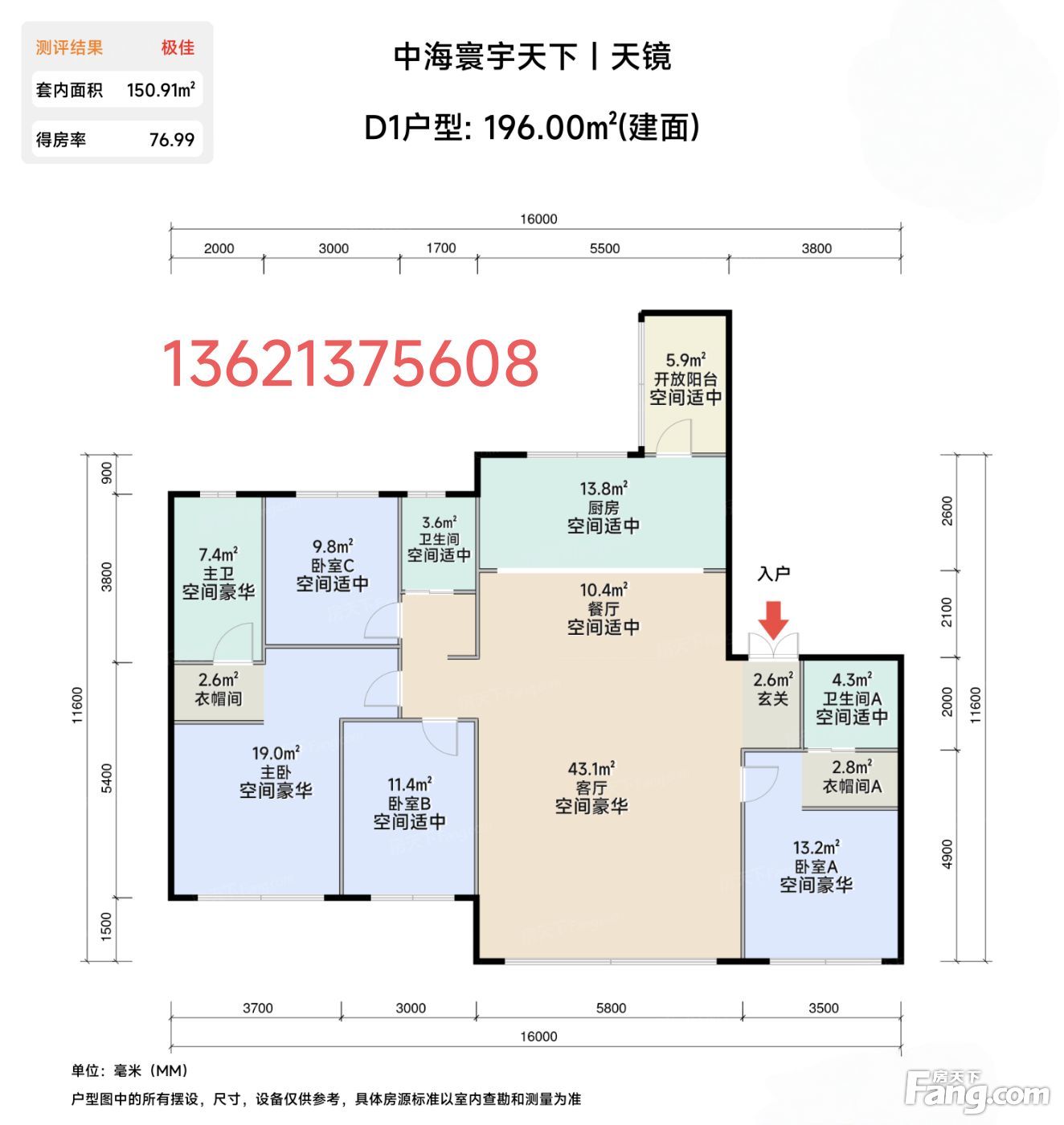 *获取完整户型报告,同时会有免费语音讲解服务