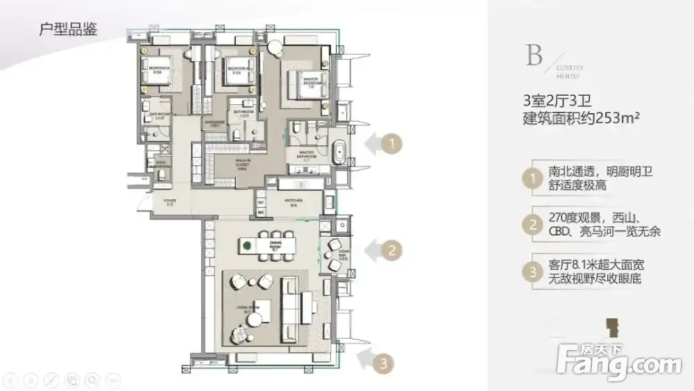 房屋拥有相对宽松的尺寸,布局通透,动静分离,设计豪华