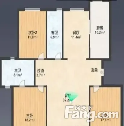 户型齐全,主打主卧朝南,客厅朝南三居