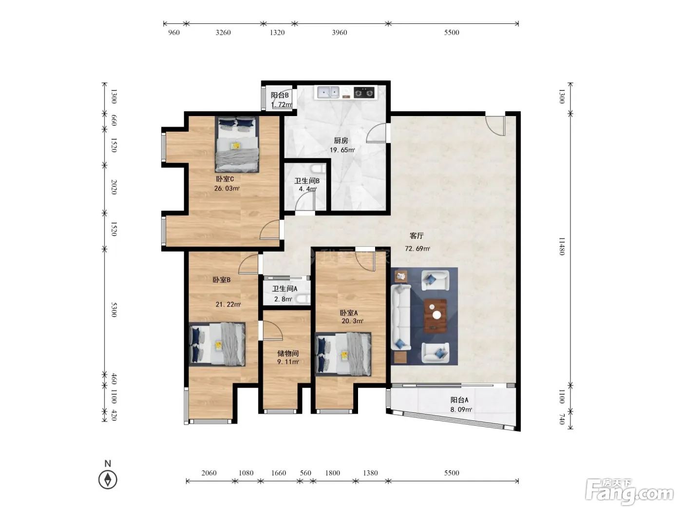 3室1厅2卫