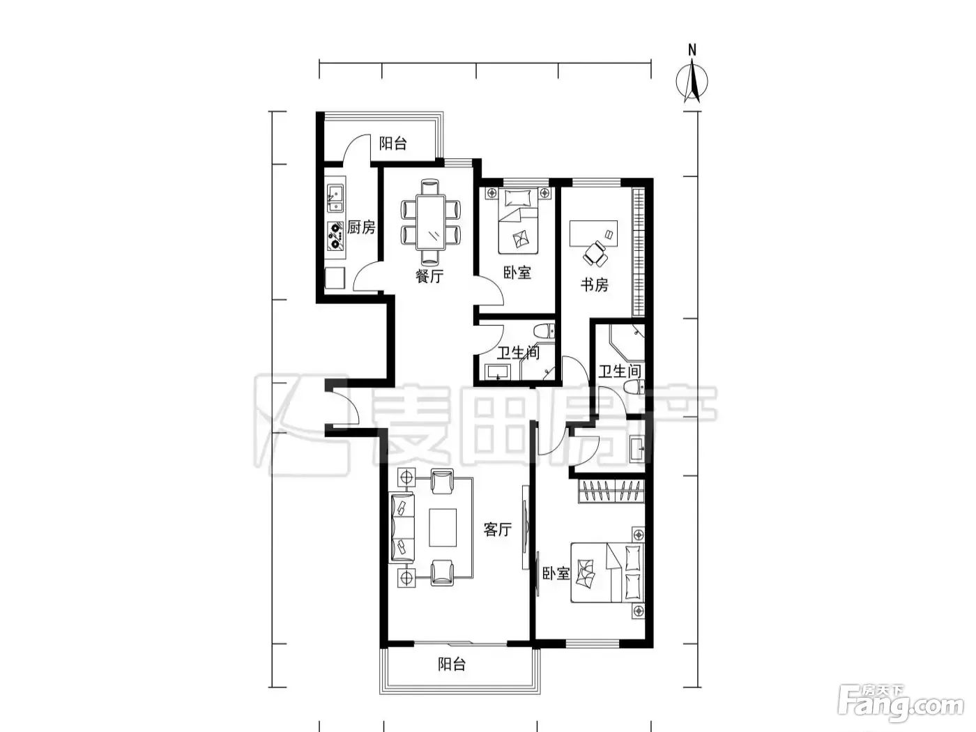 户型齐全,主打户型方正,明卫,客厅朝南,双阳台三居