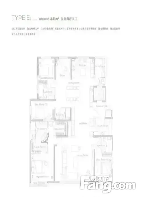 缦云ONE户型主要有211平-262平的的四居 、349平-349平的南北通透,户型方正,主卧套间,主卧带卫,主卧朝南,U型厨房的五居 。