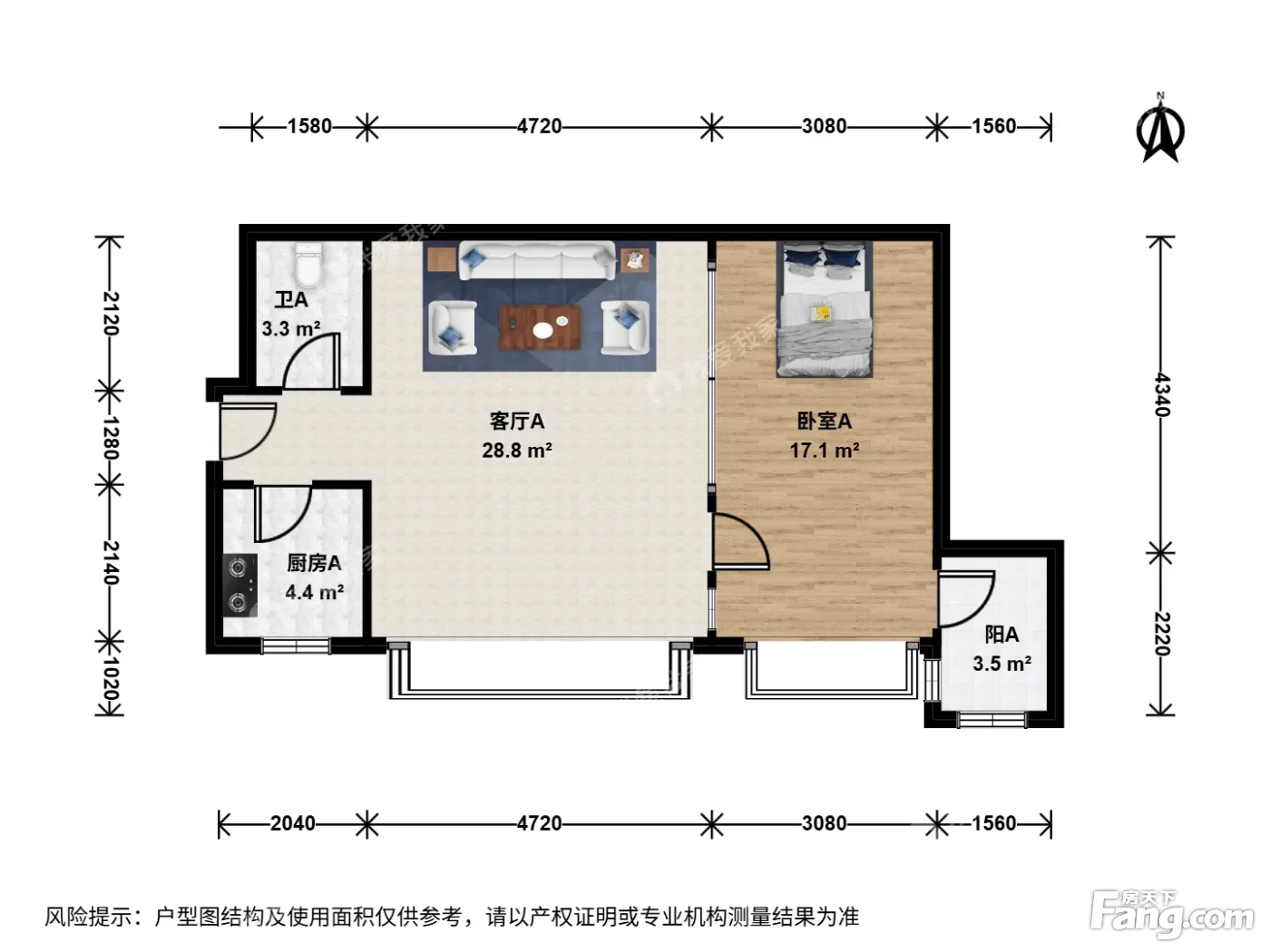 户型齐全,主打客厅朝南一居