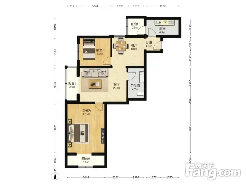 户型齐全,主打明厨,客厅朝南二居