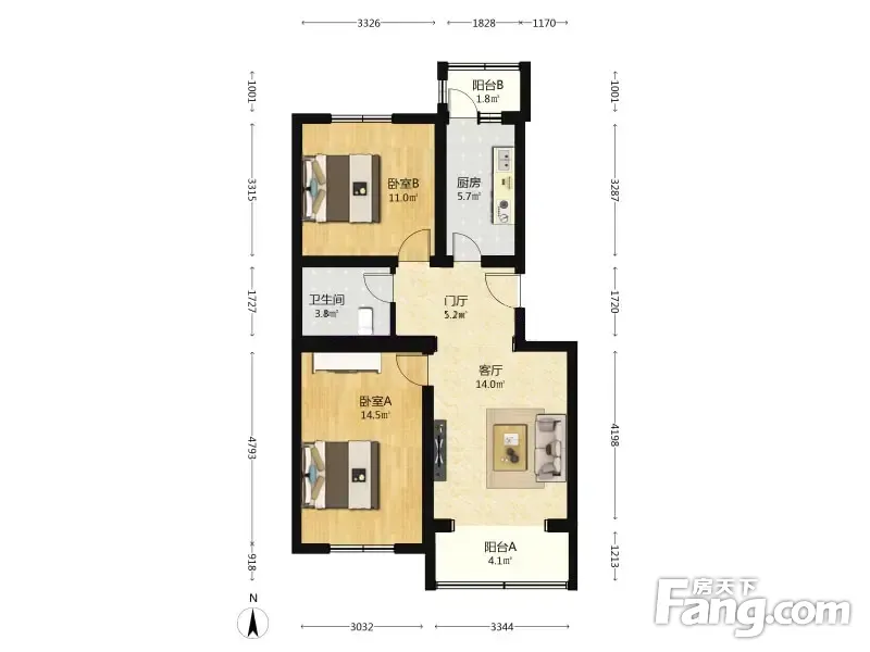 兴海家园日苑 2室1厅 84.07平