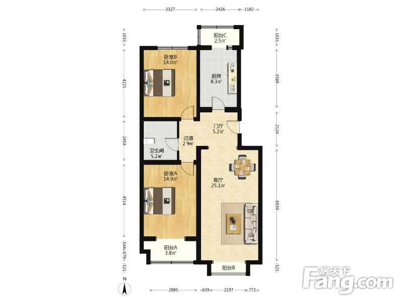 户型齐全,主打户型方正,明厨,双阳台,主卧朝南三居