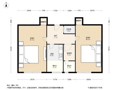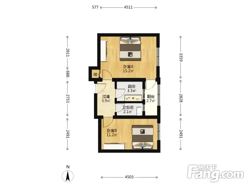 钟界沸0.5 地坛北里 2室1厅 53.53平