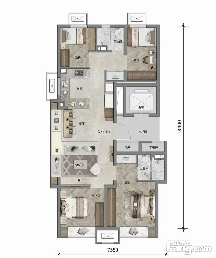 户型齐全,主打南北通透,客厅朝南四居