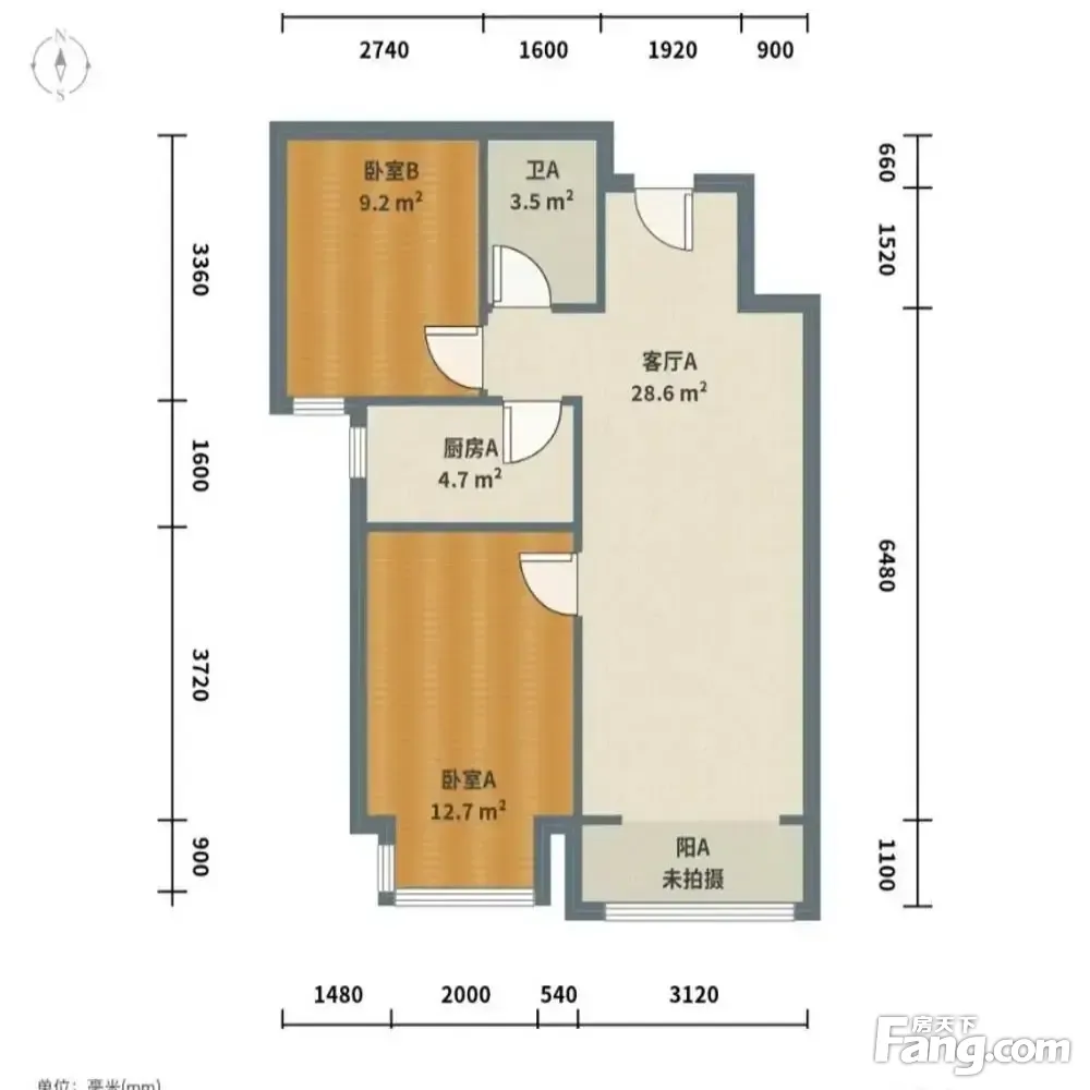 户型齐全,主打户型方正,明卫,明厨,主卧朝南二居