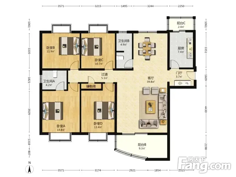 房屋拥有相对宽松的尺寸,布局通透,动静分离,设计豪华