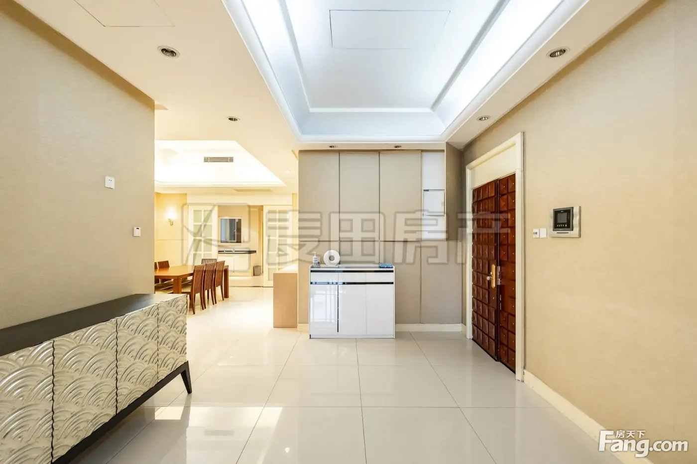 公寓总建筑面积近10万平米,共三栋板楼,成优美的弧形聚合状态,15层到20层不等。全部为国际品牌精装大宅,户户皆能观看高尔夫球场美景,是城市中难觅的高尚居所,满足了成功人士同时拥有价值VALUE与眼界VIEW的超高追求。公寓均是260平米以上的超质大宅,一梯一户,IC卡操控电梯由车库尊邸,1:1.5车位配比,私属宁静,号人物的高贵享受。顶层有近1000平米的航母级空中跃层别墅,尽揽高尔夫球场与朝阳公园美景。