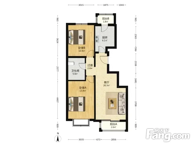 艺苑桐城 2室2厅 88.95平
