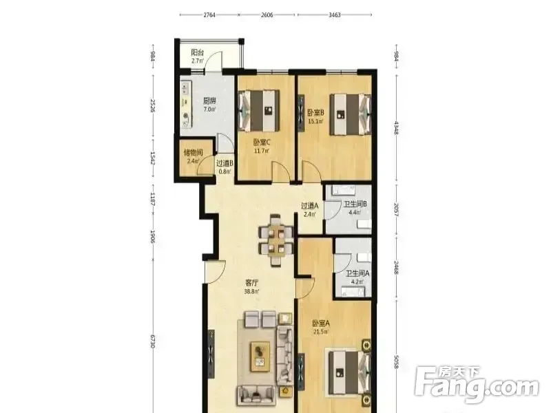 (买方零拥)兰德华庭 3室1厅 141.86平