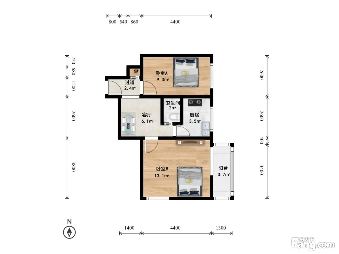 月坛·洪茂沟·2室·1厅