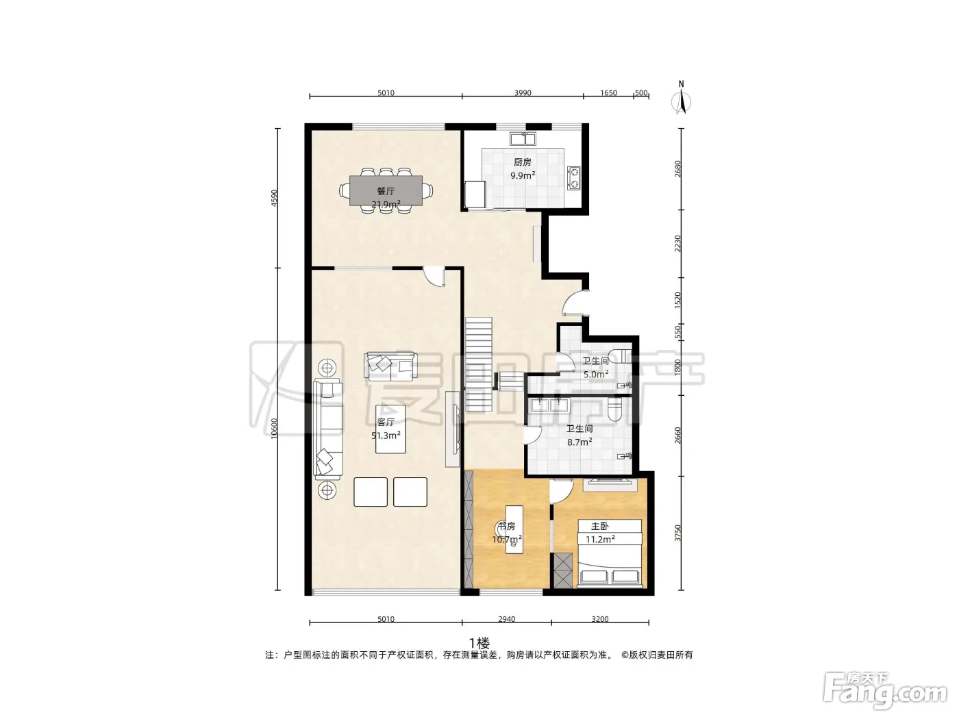 户型方正,客厅有40平米 两个卫生间都是明的 采光视野好