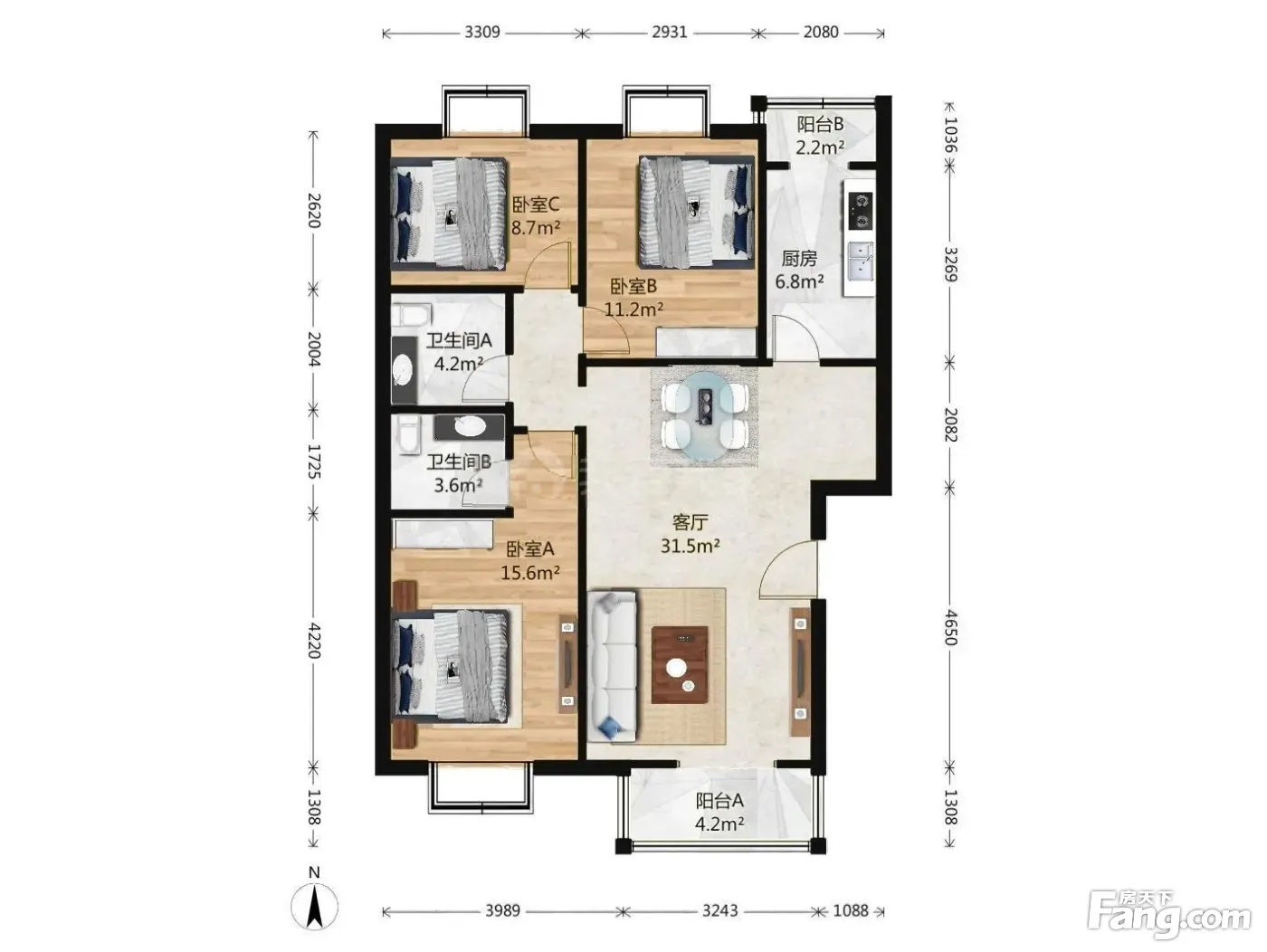 3室1厅2卫