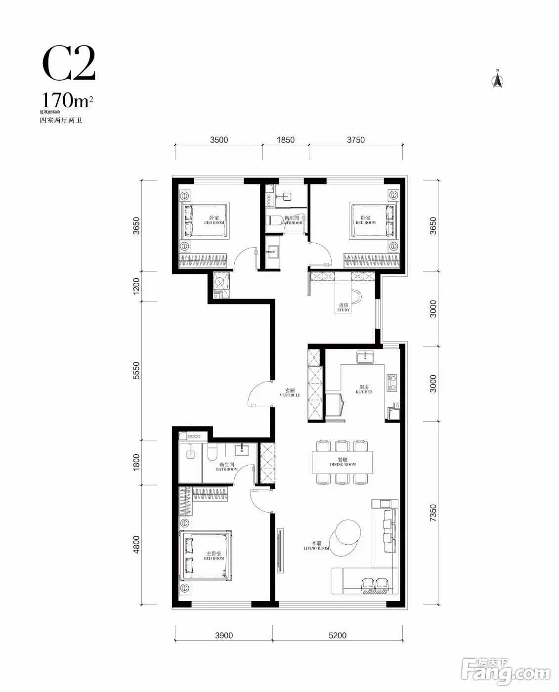 房屋拥有相对宽松的尺寸,布局通透,动静分离,设计豪华