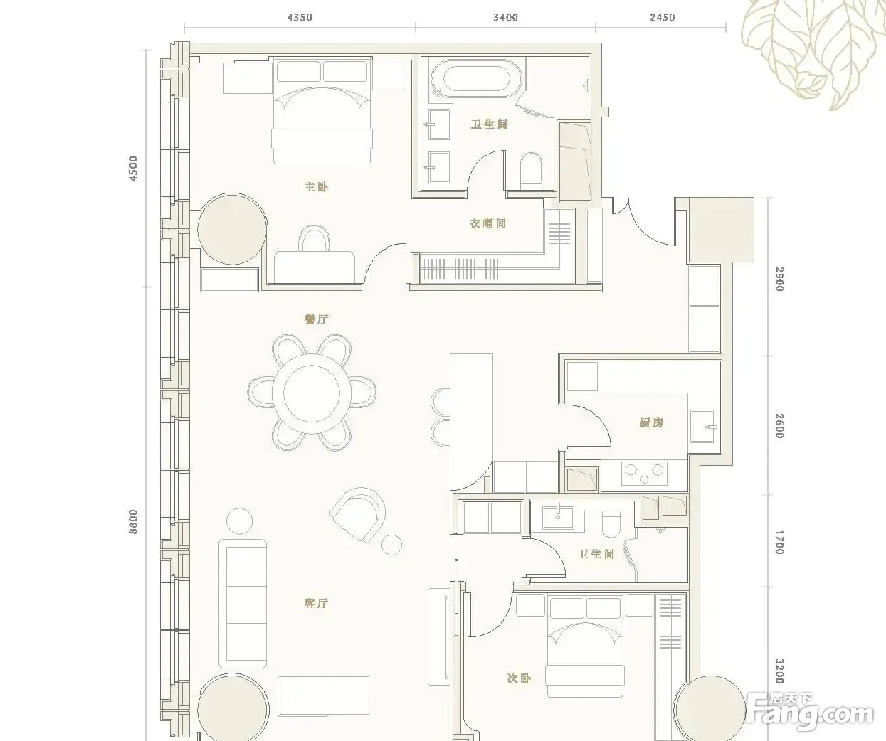 房屋拥有相对宽松的尺寸,布局通透,动静分离,设计豪华