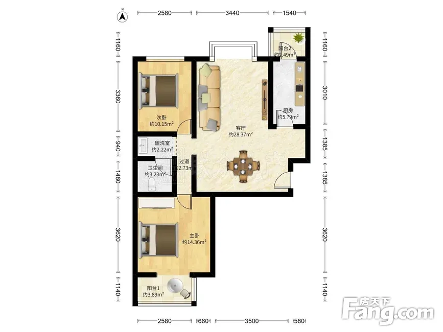 户型齐全,主打户型方正,双阳台二居