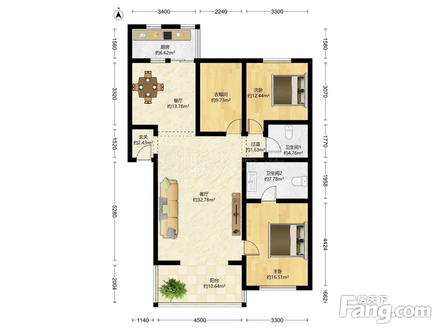 户型齐全,主打户型方正,明厨,主卧朝南三居
