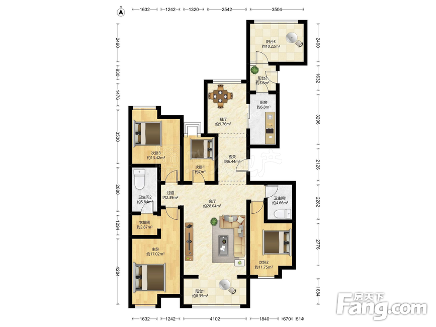 户型齐全,主打户型方正,明卫,独立衣帽间,双阳台,双卧朝南,主卧朝南四居