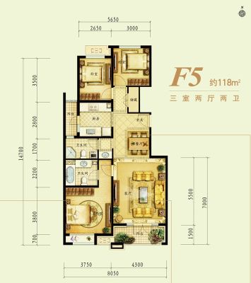 户型齐全,主打户型方正,明卫,明厨,主卧朝南三居