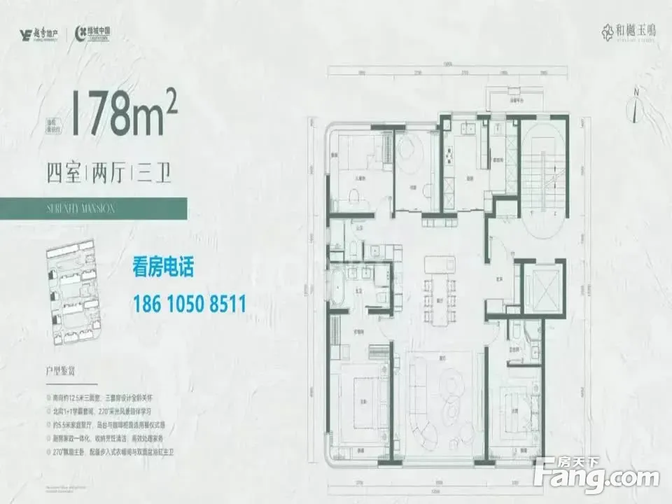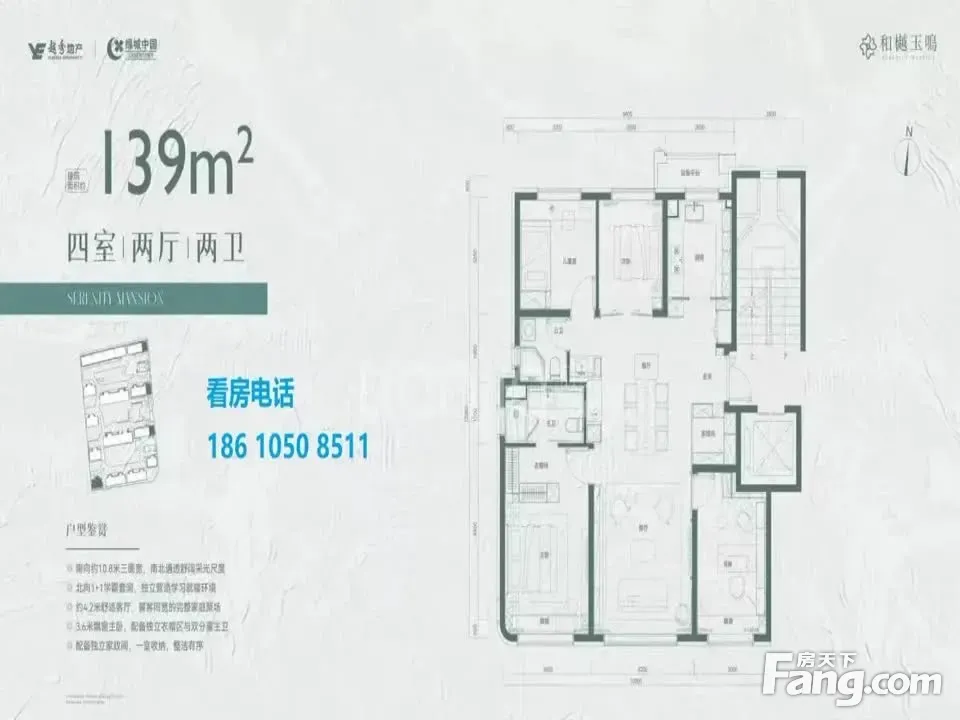 和樾玉鸣户型主要有139平-267平的南北通透,主卧套间,独立玄关,客厅朝南,双卧朝南,带衣帽间,开放厨房的四居 。