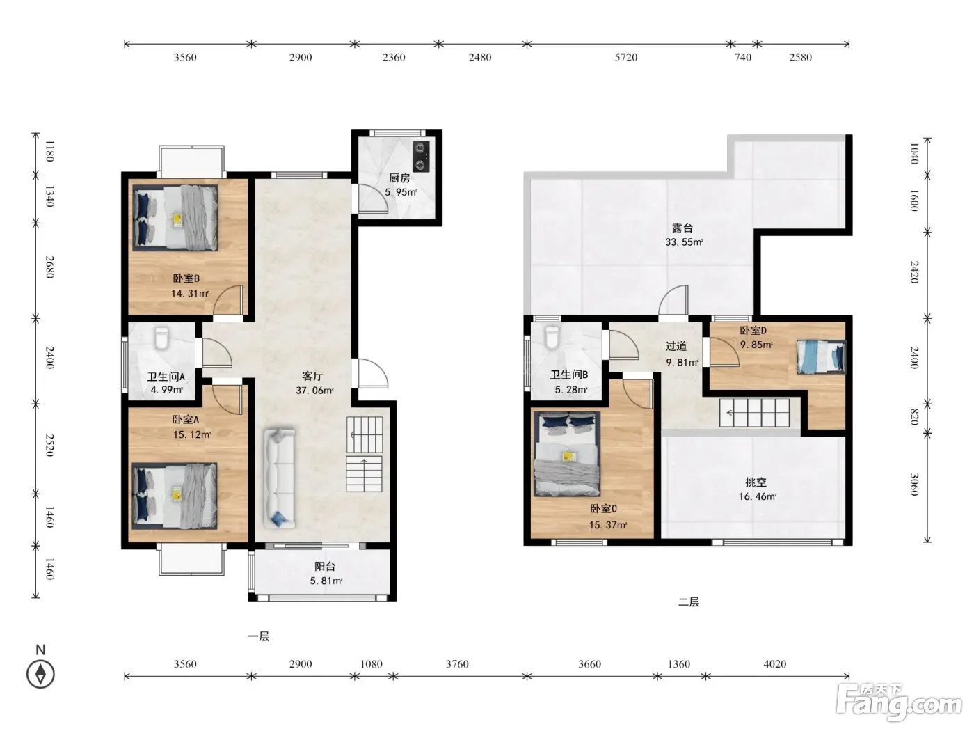 户型介绍:房子是南北通透户型,楼下南北各一个卧室,客厅朝南,独立餐厅,独立厨房和卫生间;楼上两个南卧室,一个卧室可做储藏间或更衣室;全明格局,客厅落地窗,卧室是外飘窗,室内楼梯,挑空客厅;