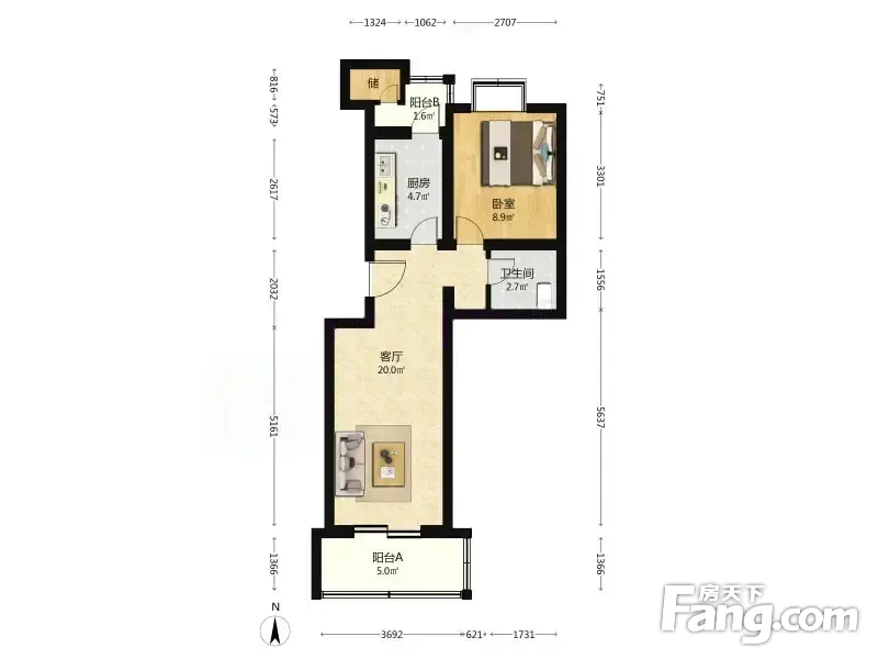 吕营嘉园C区 1室1厅 57.05平