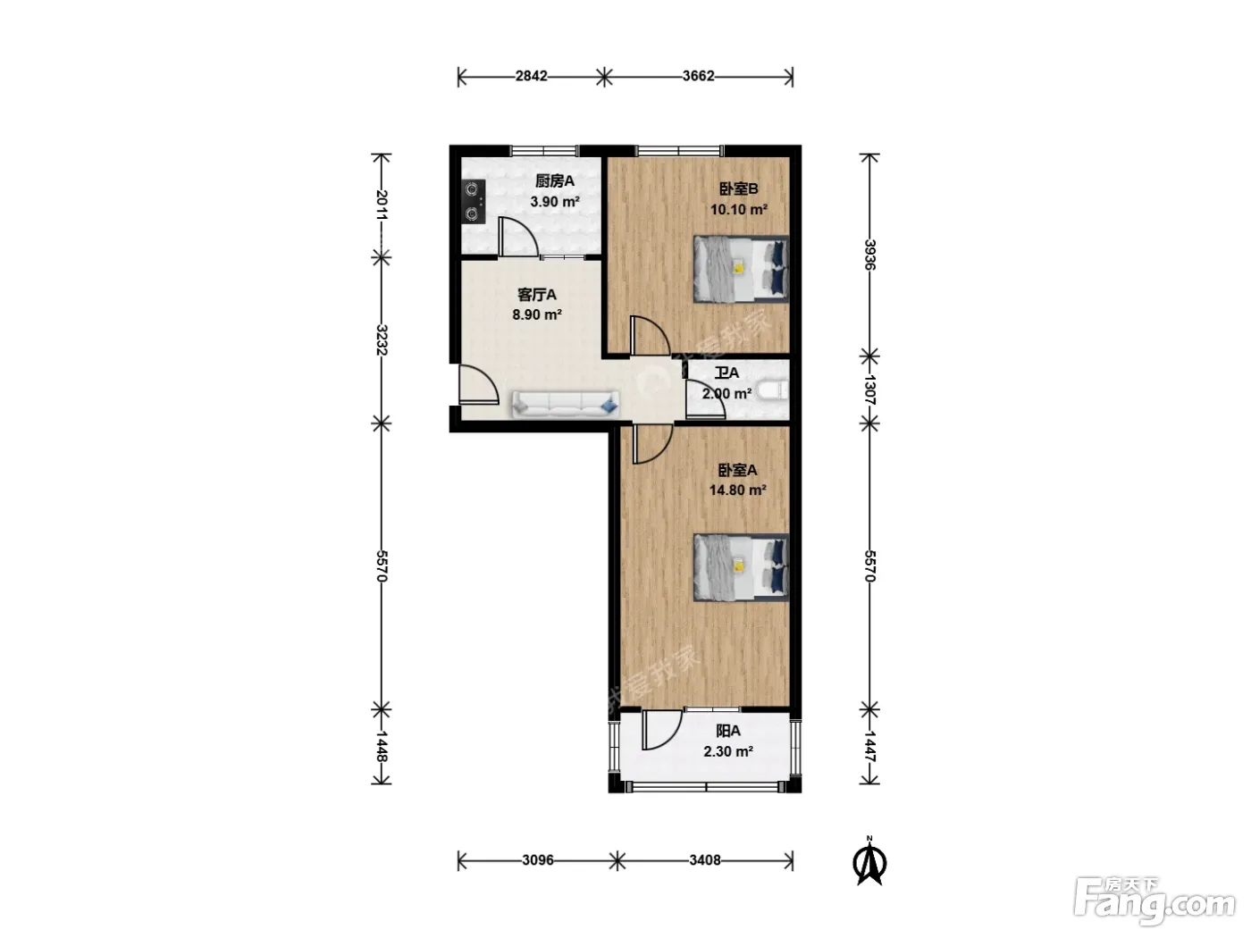 户型介绍:【户型介绍】房子是南北两居室,进门有个小餐厅,厨房朝北,主卧室朝南带阳台,次卧室朝北,两间卧室都很宽敞,卫生间在两个卧室中间,房子中间层,没有遮挡,采光很好,通透性特好,不临街,非常安静。