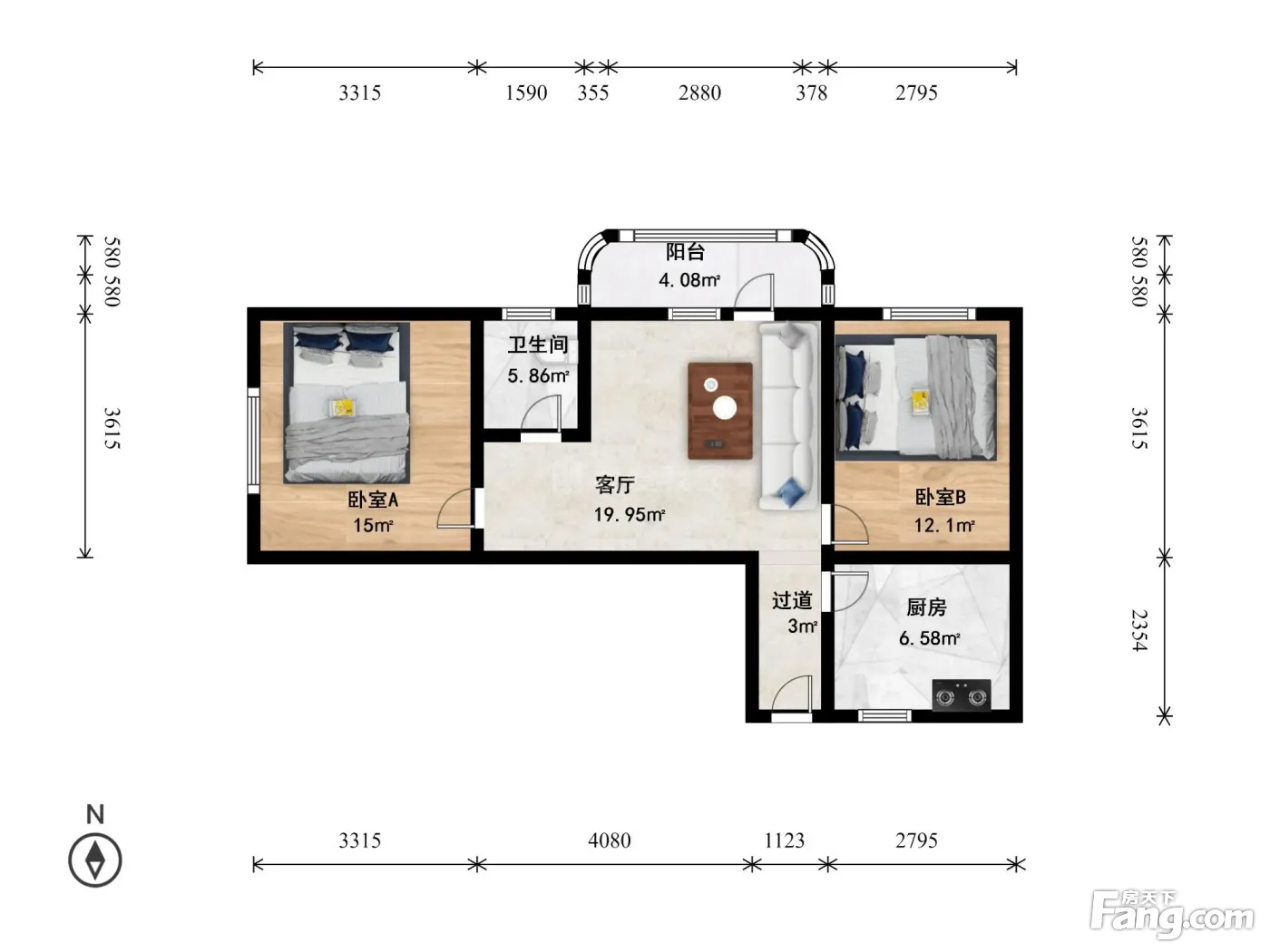 户型齐全,主打客厅朝南,双阳台二居