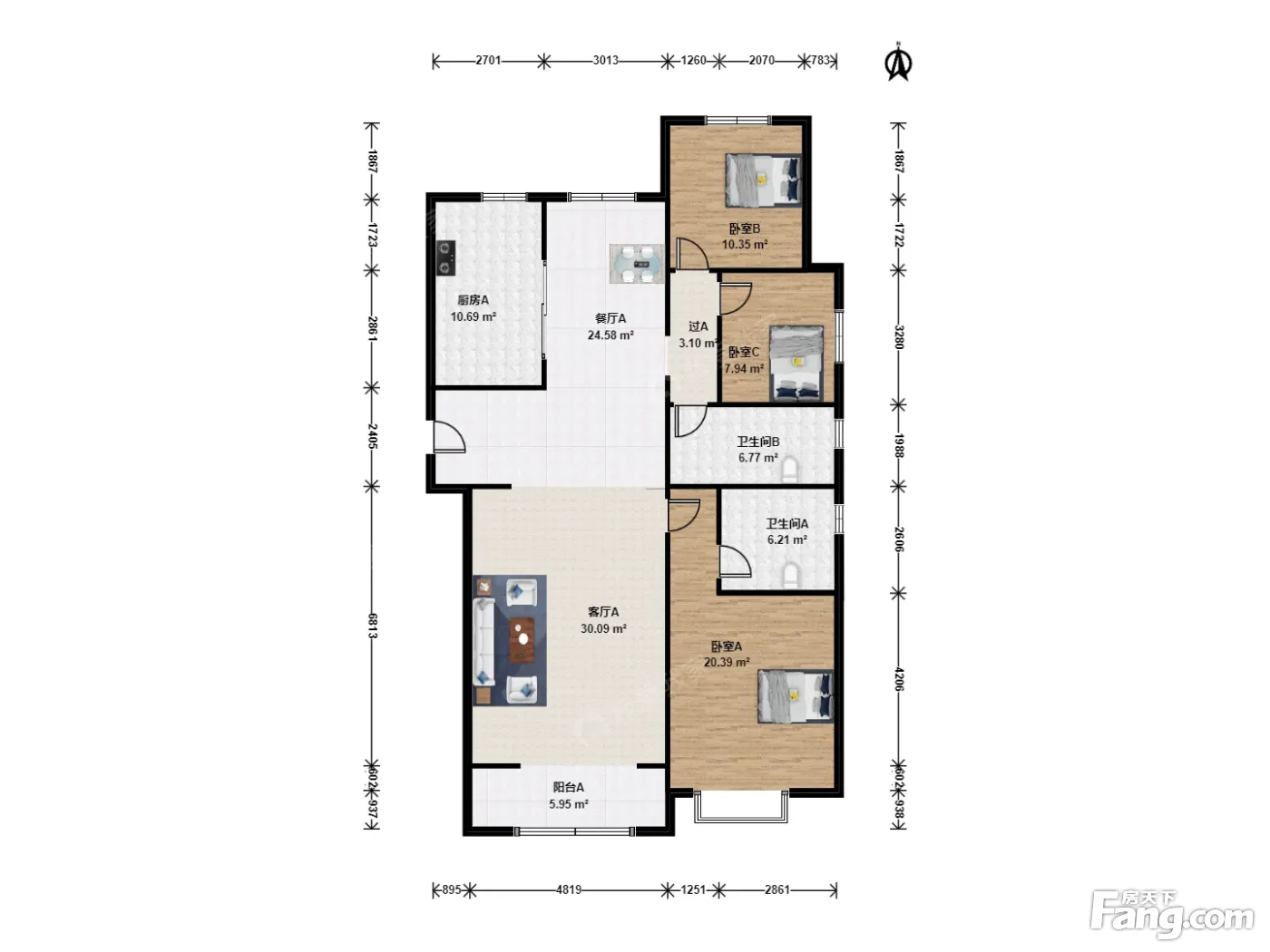 户型齐全,主打南北通透,全明格局,户型方正三居