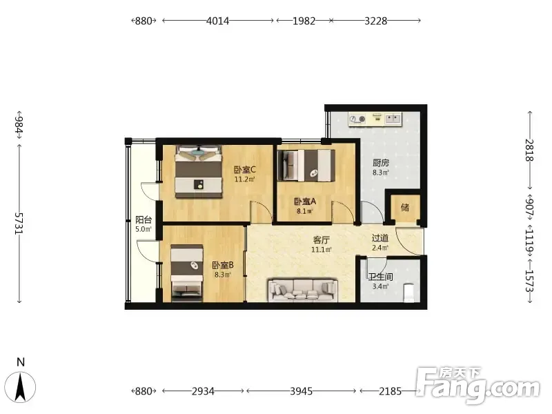 菜户营地铁 14号线 鹏润家园 3室1厅 83.44平
