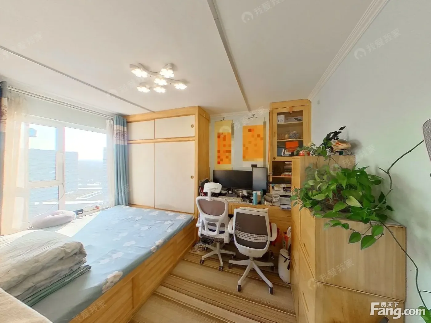 户型介绍:全南向两居室,双卧客厅朝南(客厅带落地窗)现格局主卧墙和客厅打通了(恢复不影响装修)进门左手出是卫生间,次卧门口带储藏间,厨房格局方正,主卧阳光能铺满房间80%