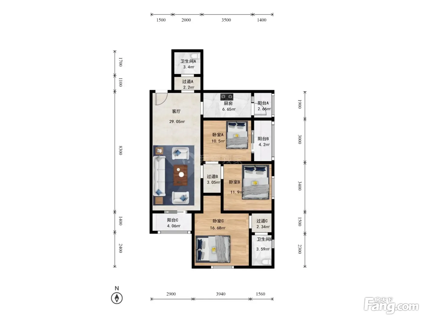 3室1厅2卫