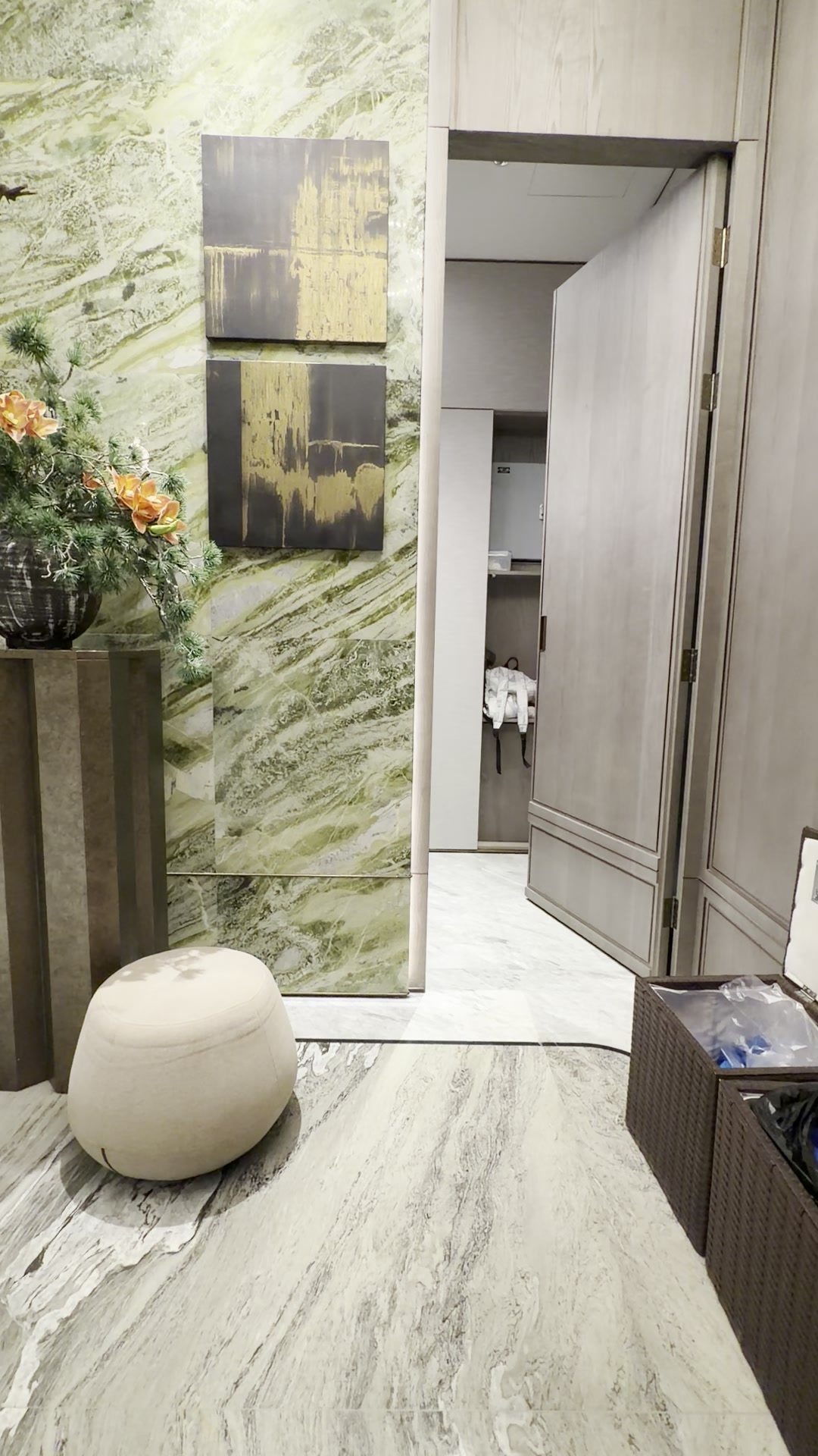 【户型特点】 ?独创复合幕墙:以繁复的工艺工法独创“复合幕墙体系”,以干挂石材为主,配以彩釉玻璃、杂拼面砖、氟碳金属板等九大材质融汇让建筑的尊贵感历久弥新; ?全明面宽尺度:客厅约8.3米的面宽,四居室全套房,卧室空间尺度也大。 ?奢阔层高空间:层高高,入户层层高约4.2米,层高约4.5米,市面上很少有产品能做到这种层高尺度。 ?户户边户设计:全是大落地窗,开窗比大,采光好。 ?户户私家电梯:功能分区,室内有电梯,区域内大部分别墅没有电梯基本都是地上两层,家里人口多功能分区不明显,但既有电梯,又能功能分区。 ?星级专业厨房:一整层的餐厨层打造趋向,在空间功能、设备标准、操作动线方面、整合了国际专业厨师的团队意见。结合星级酒店商用、家用标准,所有配置及尺度规格均达到专业级别,同时厨房,餐厅,互为一体,让我们家人更多的参与到生活,回归到家庭里面。 ?私享归家礼序:有独立的入户门头,先入户再入院,给您一个很好的归家仪式感。 ?大师精装设计:项目合院产品为WSD世尊设计作品,WSD世尊设计隶属于著名设计师吴滨创立的WS世尊集团,吴滨先生是AndrewMartin国际室内设计大奖全球年度大奖首位华人获得者。 【圈层社交层】会客厅+书房/卧室、约4.2米舒适层高、客厅约8.3米超大面宽、整面落地窗尺度达约6.7米宽,彰显主人奢阔礼序;