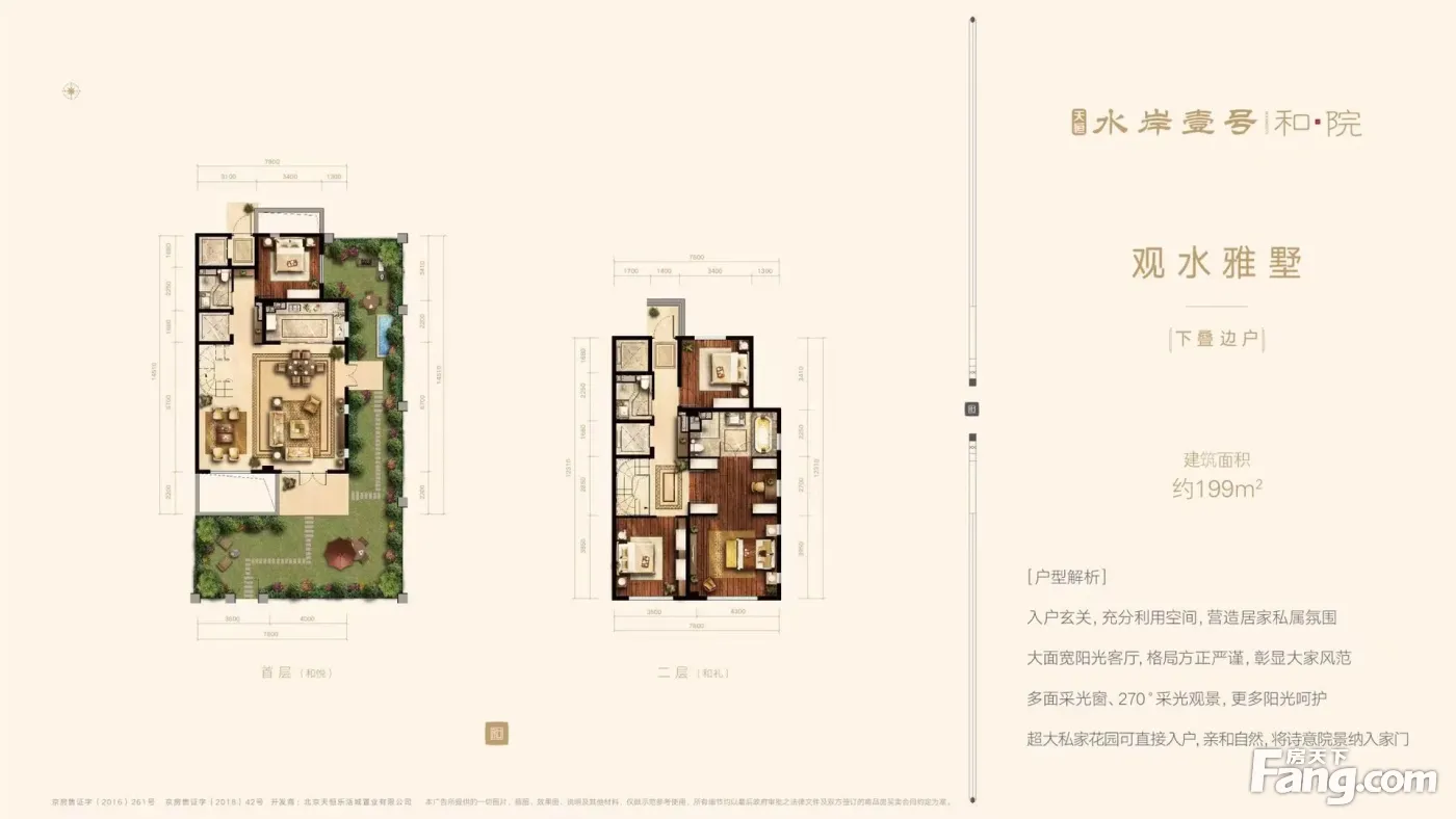 1.五环旁的千万级滨水别墅项目; 2.一线河景: 南侧80米千年水脉刺猬河,一河三园,万亩森田公园; 3.宽境看墅: 185-200㎡双叠(地下面积全部不计入房本),实用450-500平 约7.8米双面宽,阳光宽境; 4.超值:室内率180-200%,户户庭院,自然美景延伸入户; 5.城墅配套: 3公里范围内2个天街(全北京)、1个奥莱、1个山姆,3所三甲医院; 6.立体交通: 两纵两横快速路,650m既达地铁站; 7.人文涵养: 5所国家一级高校,人文生态圈层。