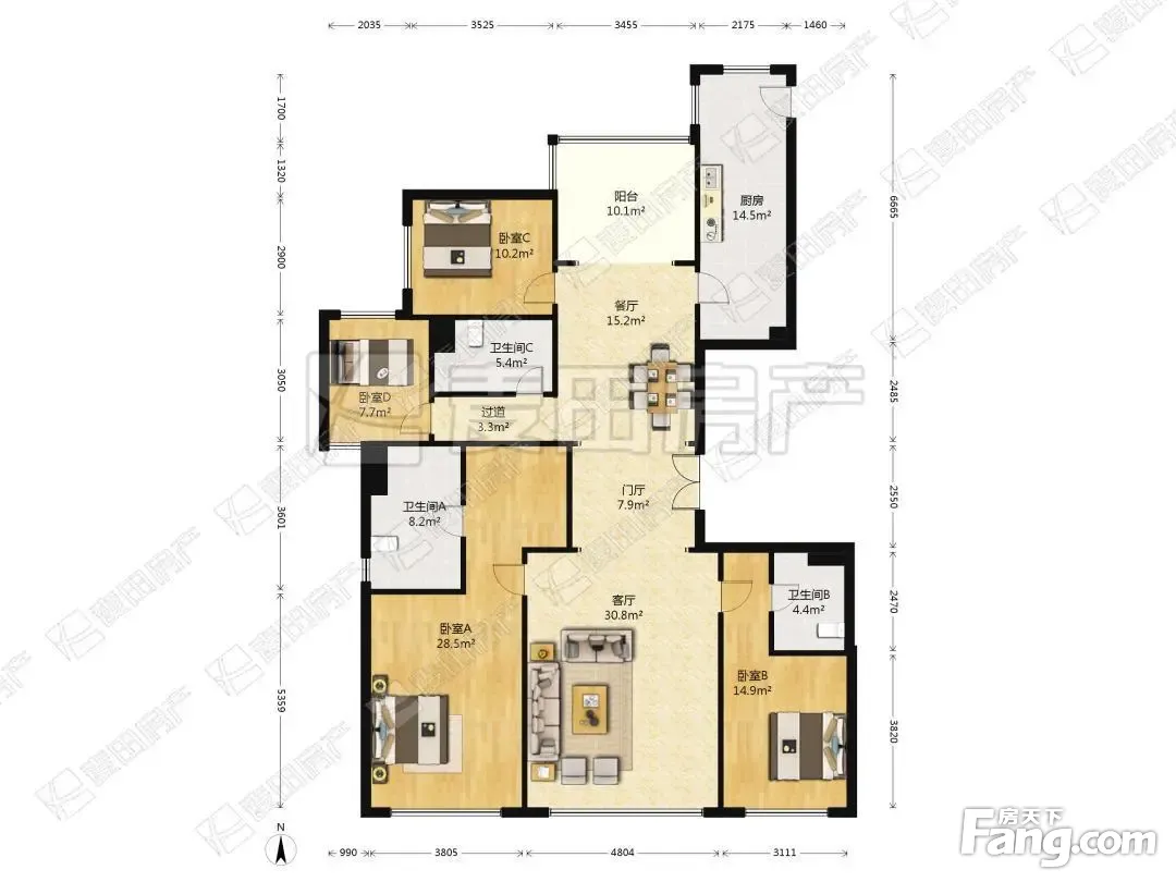 户型齐全,主打全明格局,采光充足四居