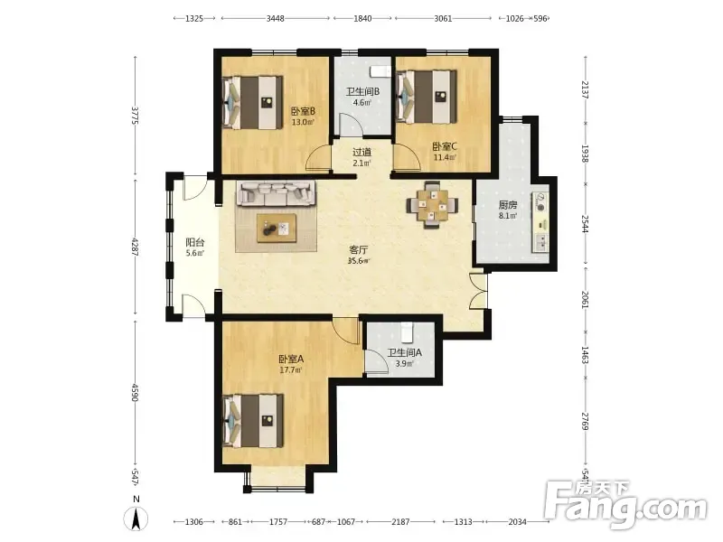 天同11号 3室2厅 139.91平 南北通透大三居采光充足