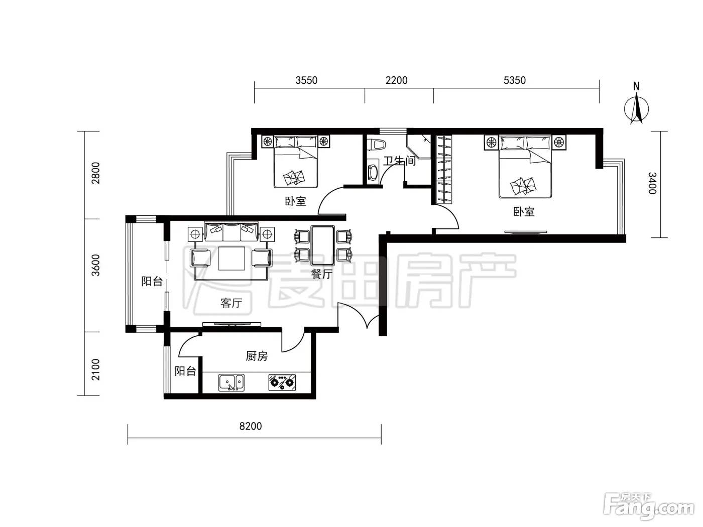户型齐全,主打客厅朝南二居
