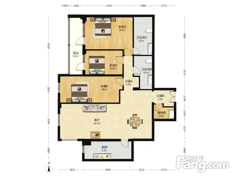 房屋拥有相对宽松的尺寸,布局通透,动静分离,