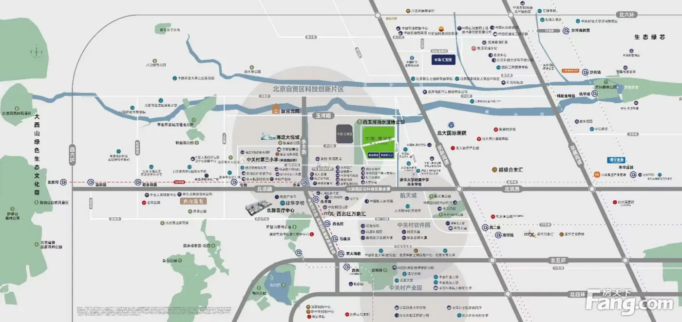 「科创海淀」中关村软件园+永丰产业基地+中关村环保科技师范园+中关村壹号+航天城 「便捷交通」本地块位于海淀区西北旺板块,周边高科技产业氛围浓厚:距离航天城约3km、中关村软件园约6.7km;路网发达:四横(玉河路、北清路、后厂村路、北五环)四纵(永丰路、友谊路、京新高速、京藏高速)、jue佳地段。