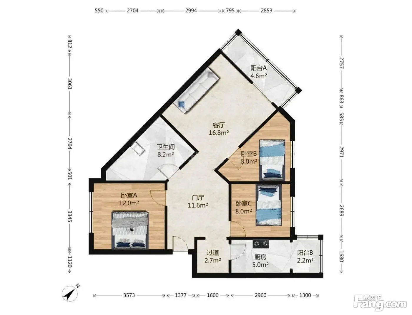 户型介绍:此房为东西北向三居室建筑面积106.66平,东西向三居室,主卧朝西,客厅两个次卧厨房朝西,