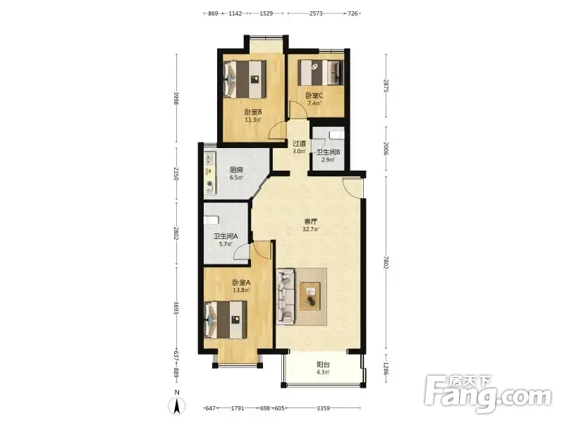 彩虹城一区 3室1厅 120.86平
