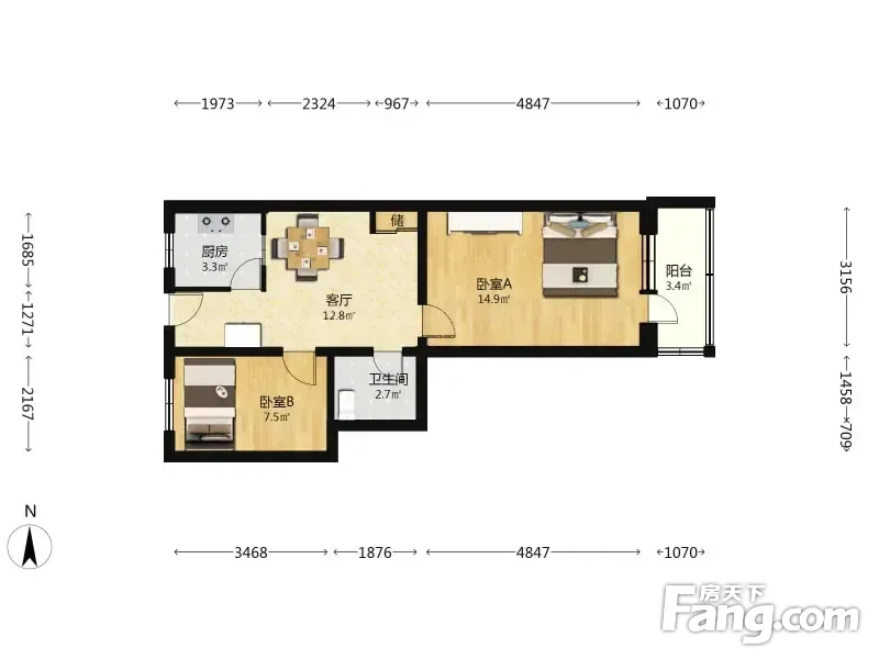 钟界沸0.5 安外大街 2室1厅 61.11平