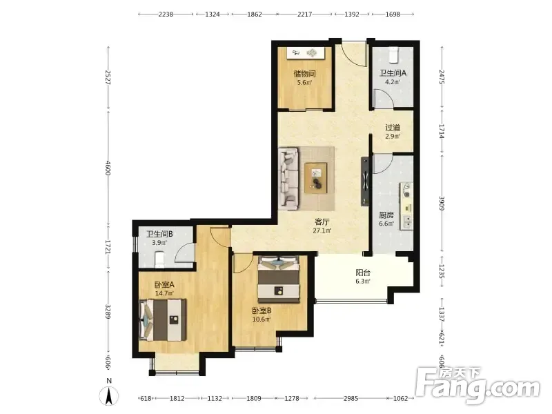 慧时欣园二期 2室1厅 106.65平