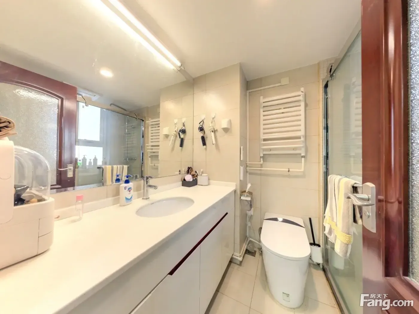 核心此房是满五年的商品房,南北通透,无遮挡,装修保持不错 小区介绍小区是2009年的,属于南三环比较新的小区,封闭式管理,总共6栋楼,半人车分流,外围环形车道,内部,有草坪、树木、凉亭,漫步小区十分惬意,小区安静适合居住。 适宜人群此房业主从未出租,保护的很好,老少适宜,采光好,无遮挡,有电梯也方便。 户型介绍房子是南北通透的两居室双卫格局,大客厅朝南向带阳台,无遮挡采光充足,主卧室朝南向带飘窗,有卫生间带窗户,次卧室朝北向也是飘窗,客卫在中间有窗户,厨房朝北向带阳台,户型方正。