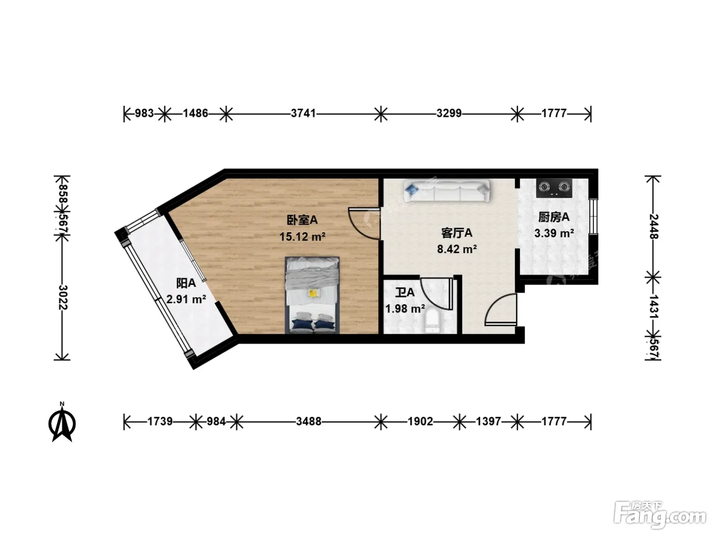户型齐全,主打明厨,客厅朝南二居