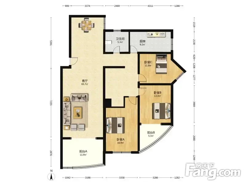 钟界沸0.5 雍和家园一期 3室2厅 201.89平