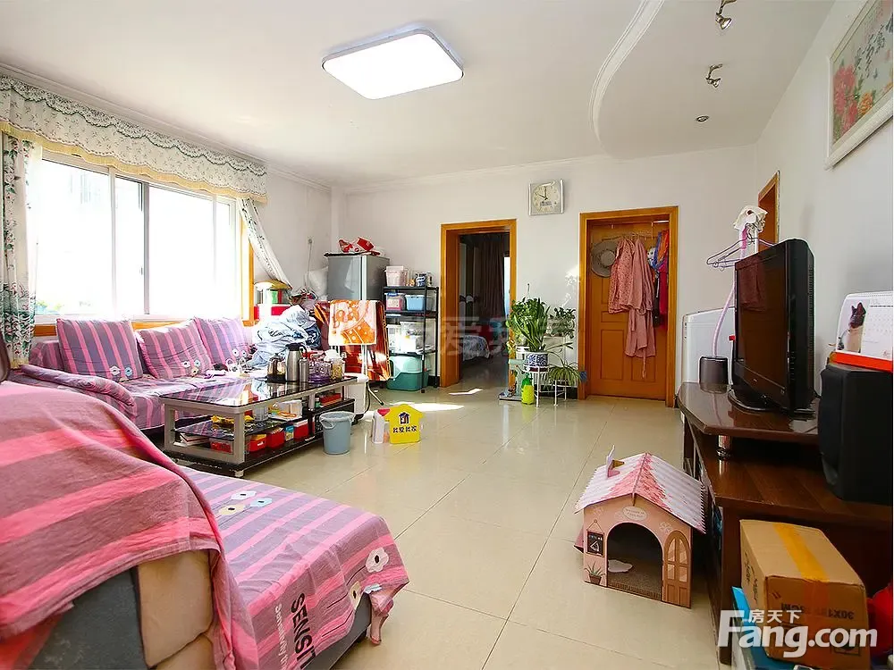 户型介绍:此房为两室两厅一卫,户型通透,户型方正,格局合理,没有浪费面积建筑面积为103.56平米,两个卧室朝东,客厅有有一个朝北的窗户,厨房和小卧室朝西,卫生间干湿分离,楼层好,室内光线充足